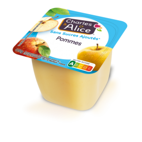 Coupelle de 100 g Compote HVE 30% moins sucrée qu'une compote classique.