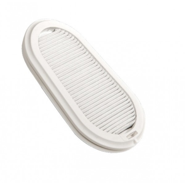 Taille unique • Dimensions : H = 97 mm, L = 53 mm, D = 11 mm • Couleur : Blanc • Composition : Média filtrant en synthétique. Mécanique de type HESPA. Insert en TPE moulé et encapsulable.